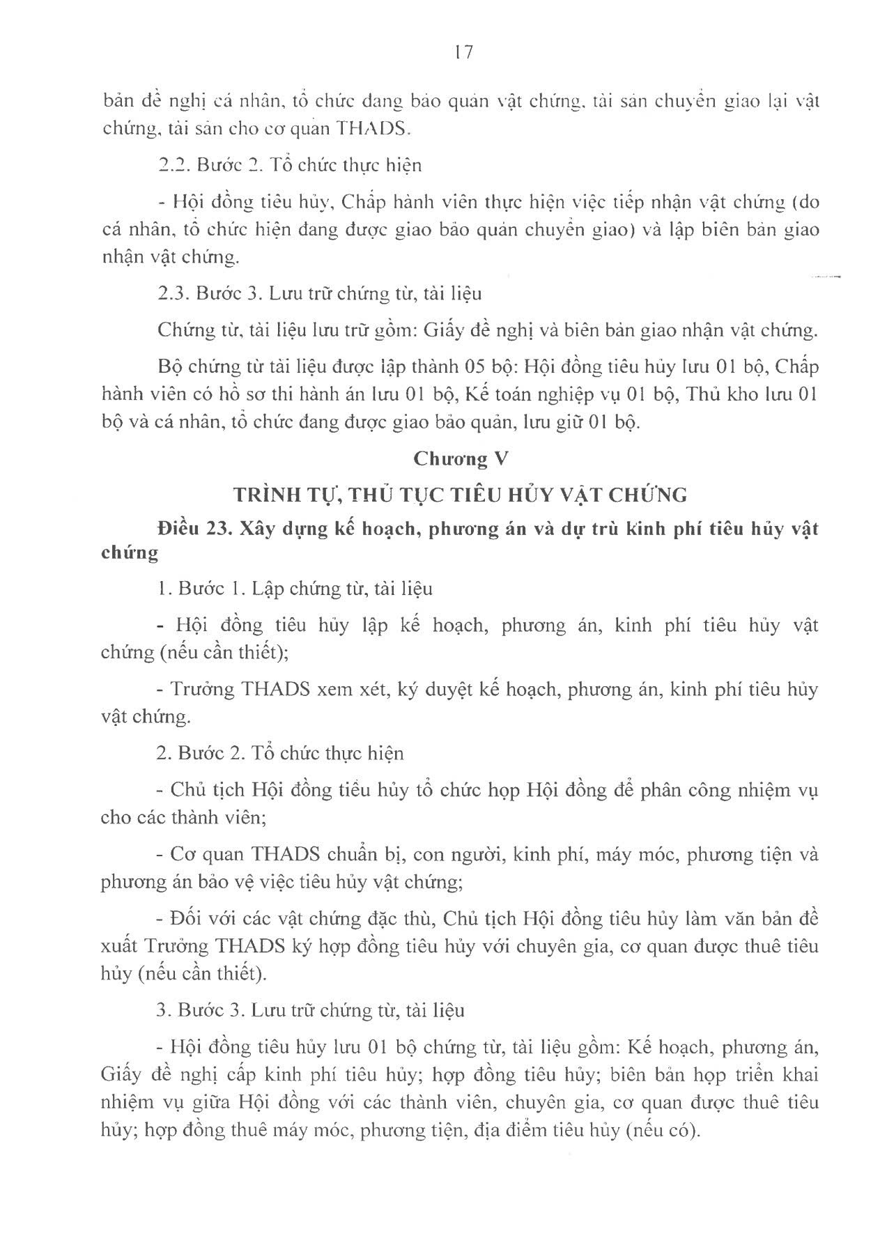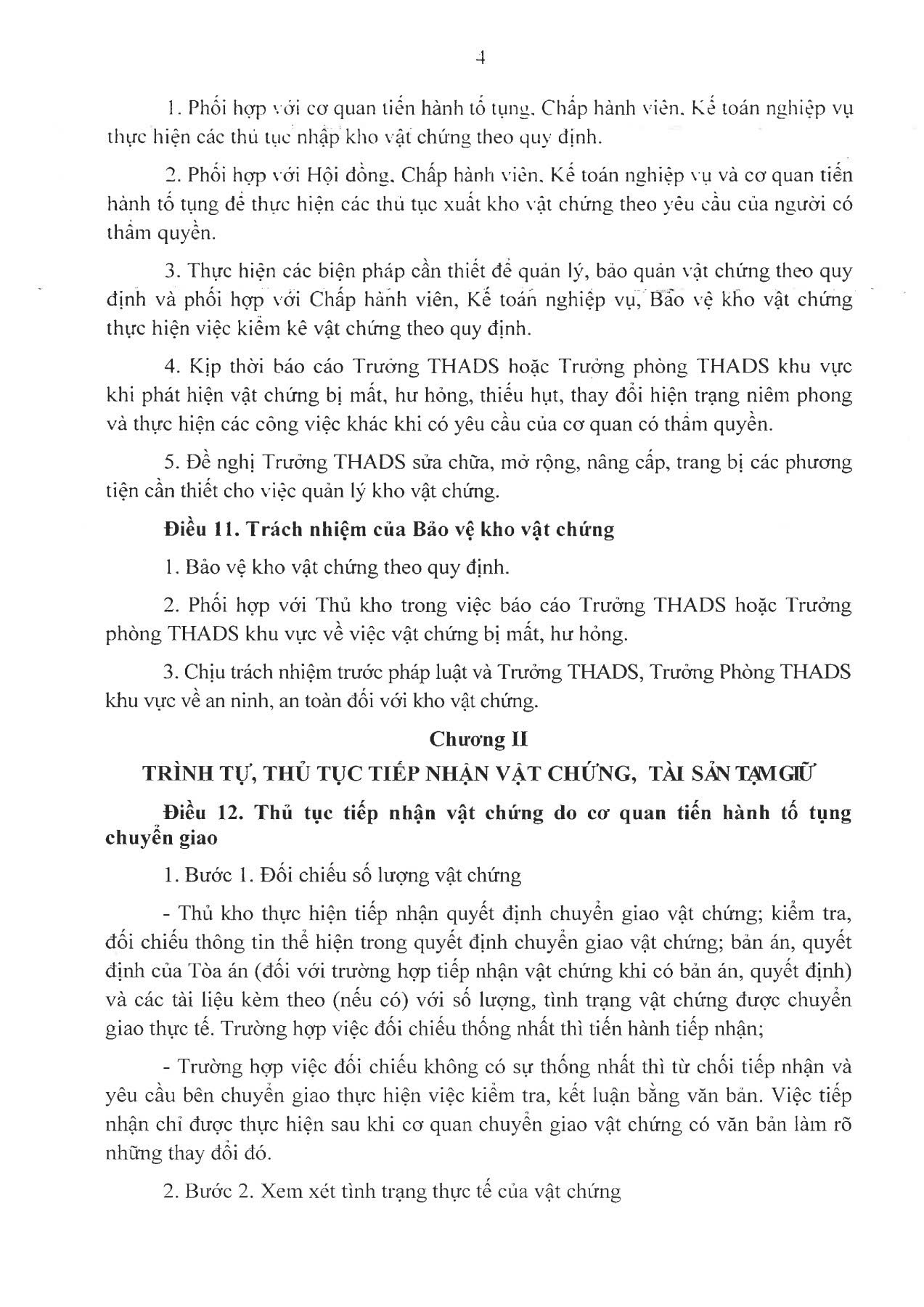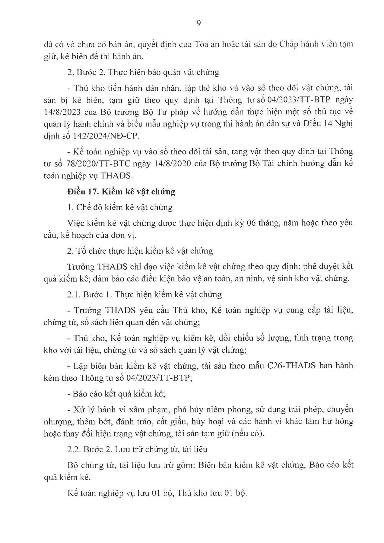 Quy trình tiếp nhận, quản lý và xử lý vật chứng, tài sản tạm giữ trong thi hành án dân sự (kèm theo QĐ 630) Tháng Mười Một 11, 2025 | Không có phản hồi FILE PDF: Quy trình-tiep nhan quan ly vat chung-kèm QĐ 630 Quyết định 630: QUYẾT ĐỊNH SỐ: 630/QĐ/TCTHADS NGÀY 26-6-2025: Quyết định về việc ban hành một số Quy trinh trong nội bộ cơ quan thi hành án dân sự Văn Bản Pháp Luật